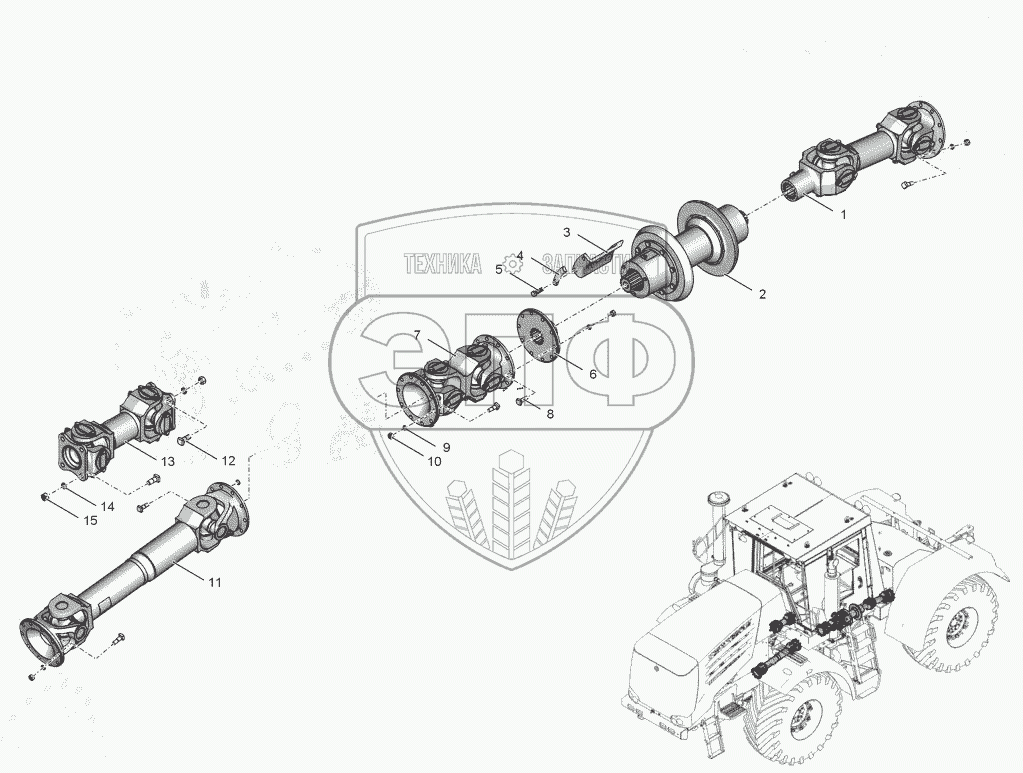 Каталог запасных частей к технике: ПТЗ К-744Р1 "Стандарт". 744Р1-2200000 Передача карданная