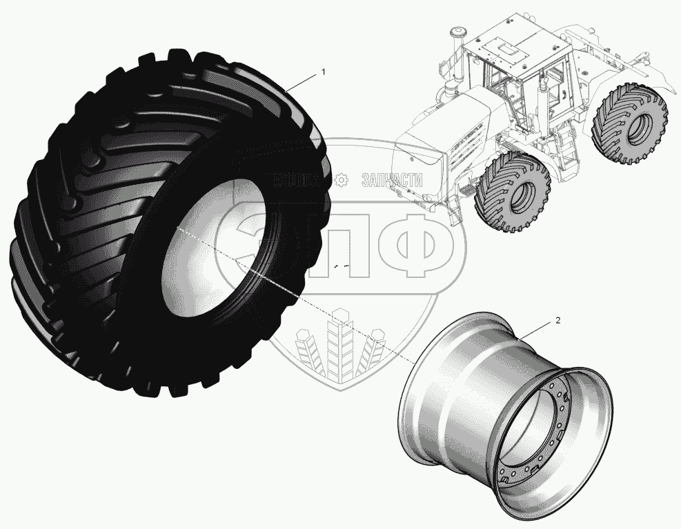 Каталог запасных частей к технике: ПТЗ К-744Р2 "Премиум". 744Р2-3100010-01 Колесо левое