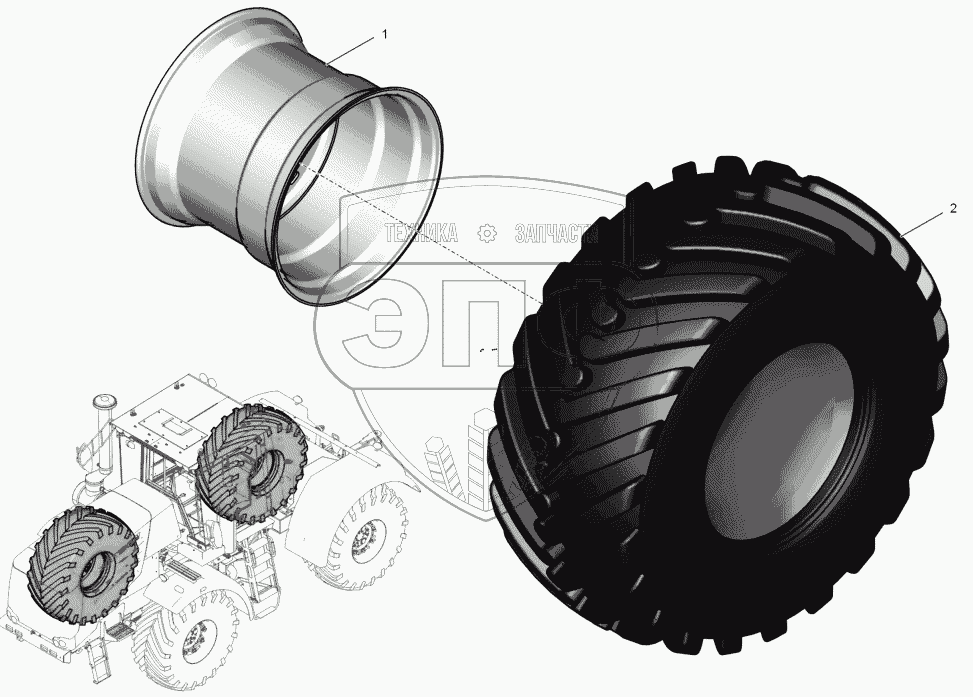 Каталог запасных частей к технике: ПТЗ К-744Р2 "Премиум". 744Р2-3100010 Колесо правое