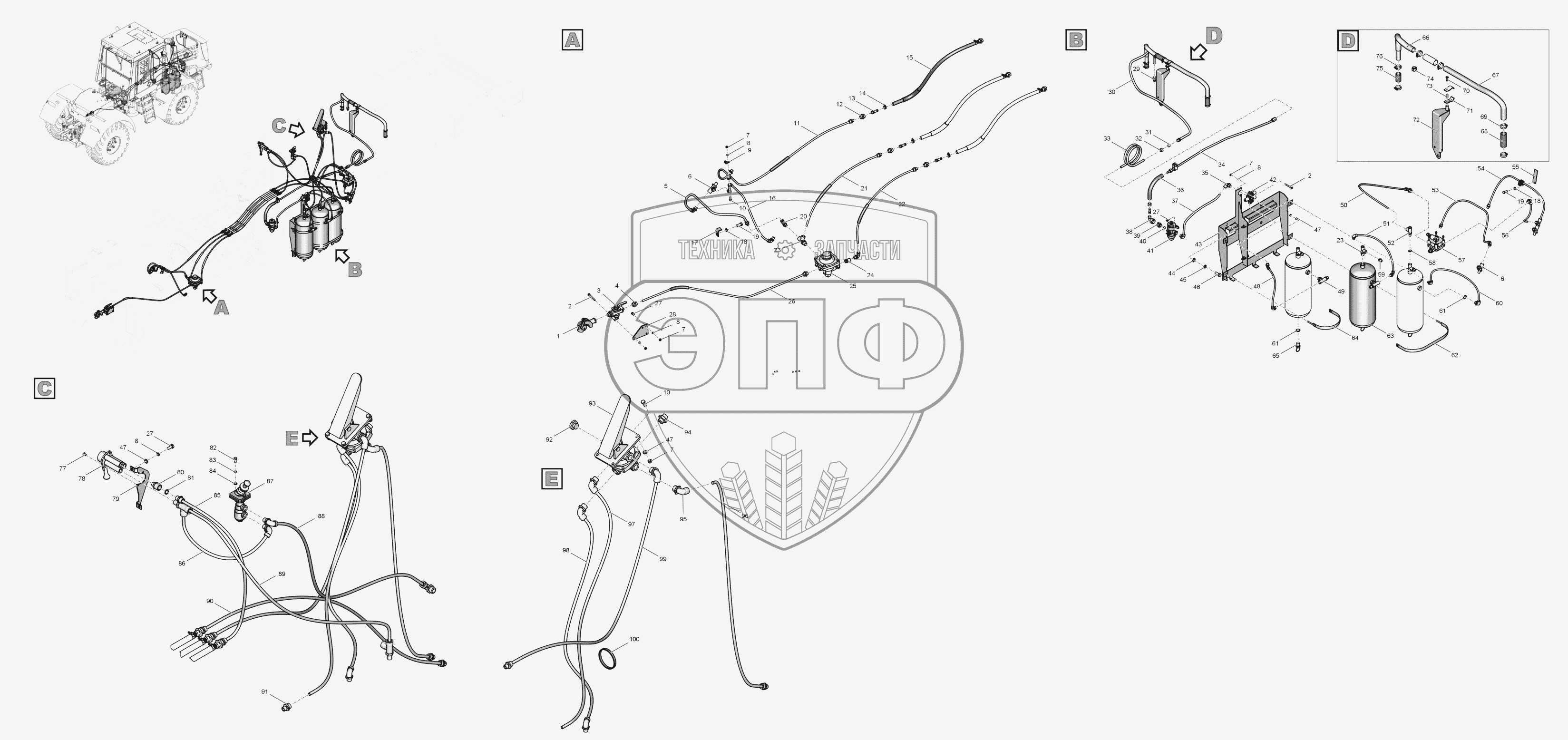 Каталог запасных частей к технике: ПТЗ К-744Р2 "Премиум". 744Р2М-3500000 Тормоза