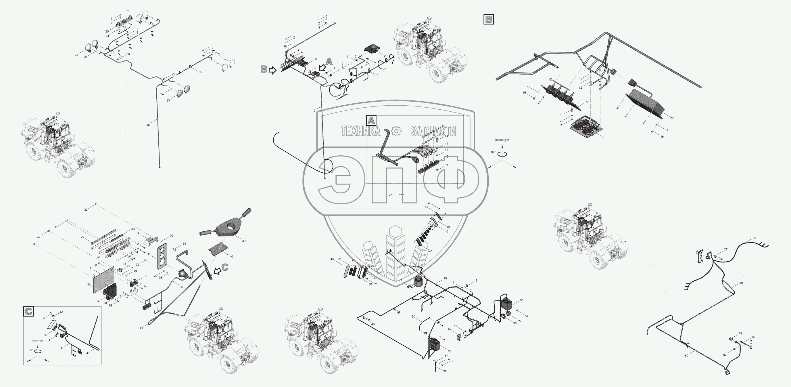 Каталог запасных частей к технике: ПТЗ К-744Р2 "Стандарт". 744Р2-3799000 Электрооборудование кабины