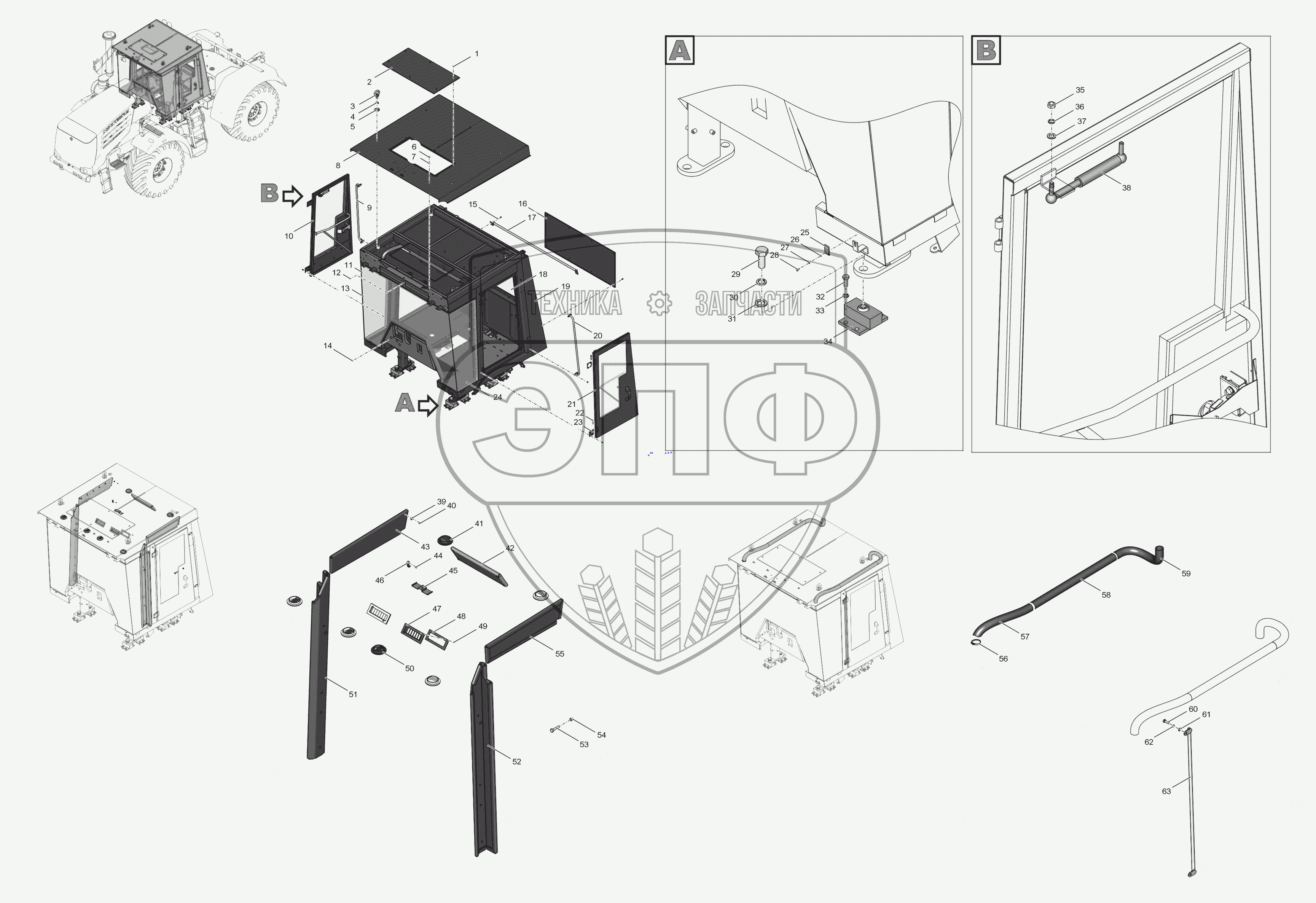 Каталог запасных частей к технике: ПТЗ К-744Р3 "Премиум". 744Р1-6700000 Кабина