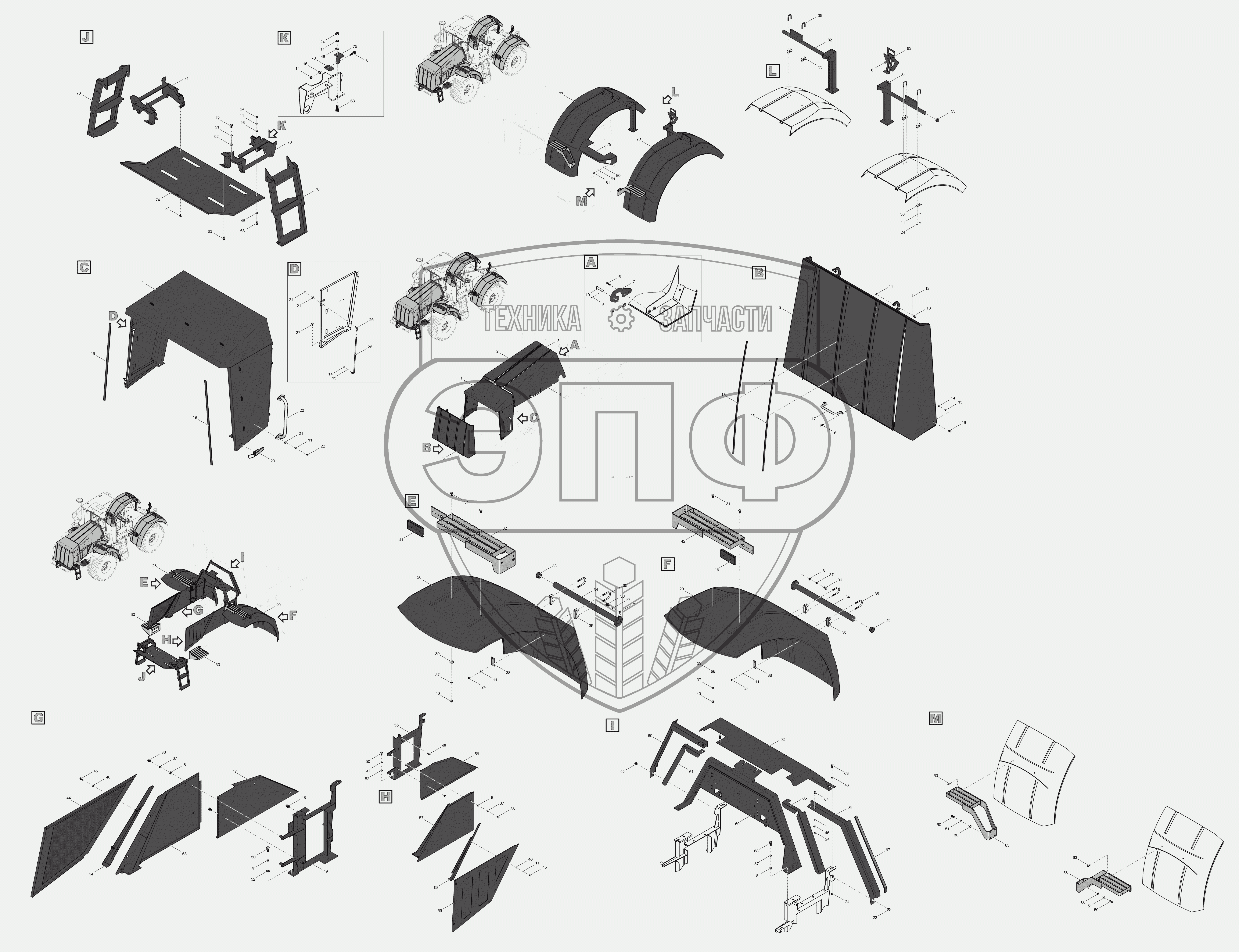 Каталог запасных частей к технике: ПТЗ К-744Р3 "Премиум". 744Р1-8400000-2 Облицовка