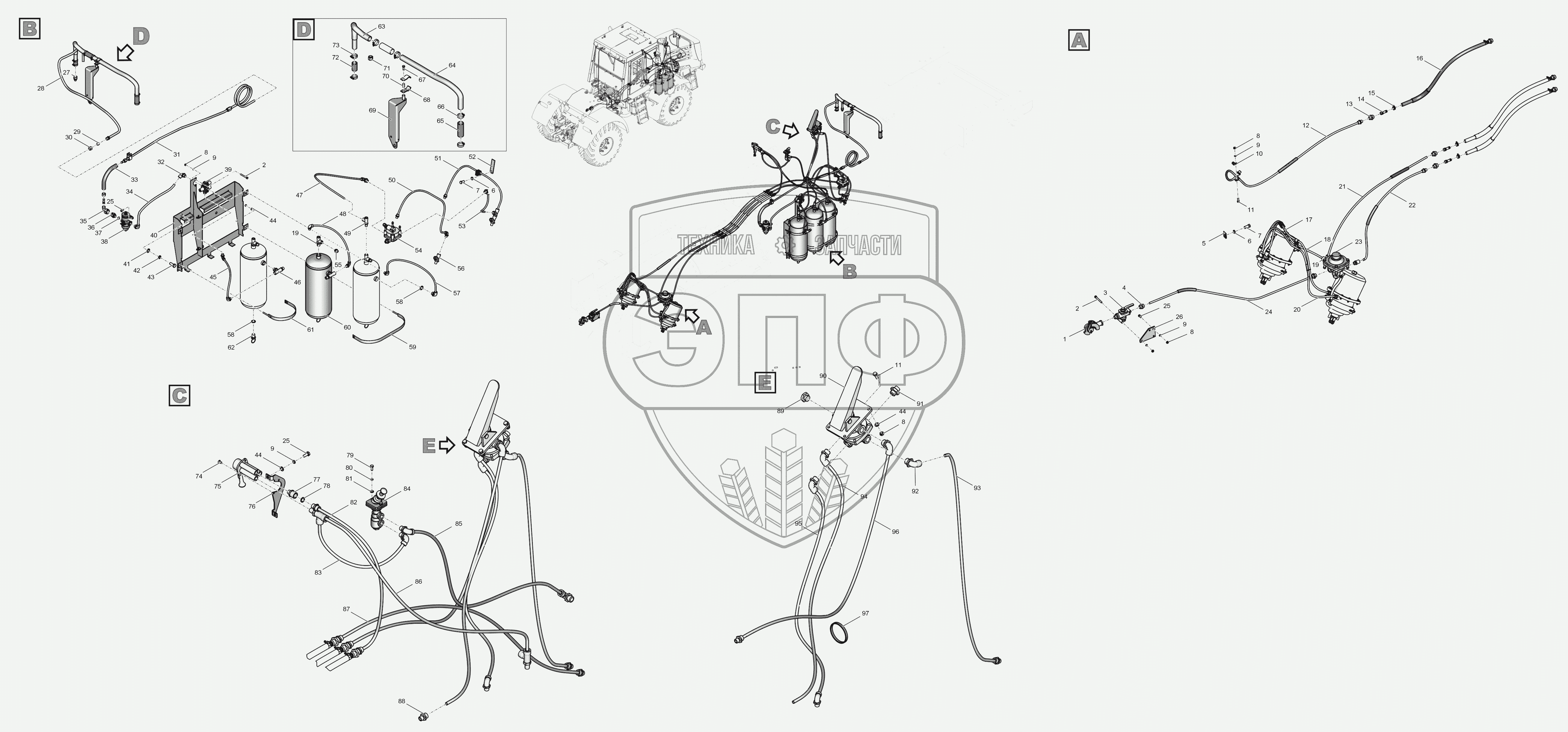 Каталог запасных частей к технике: ПТЗ К-744Р3 "Премиум". 744Р2М-3500000-01 Тормоза