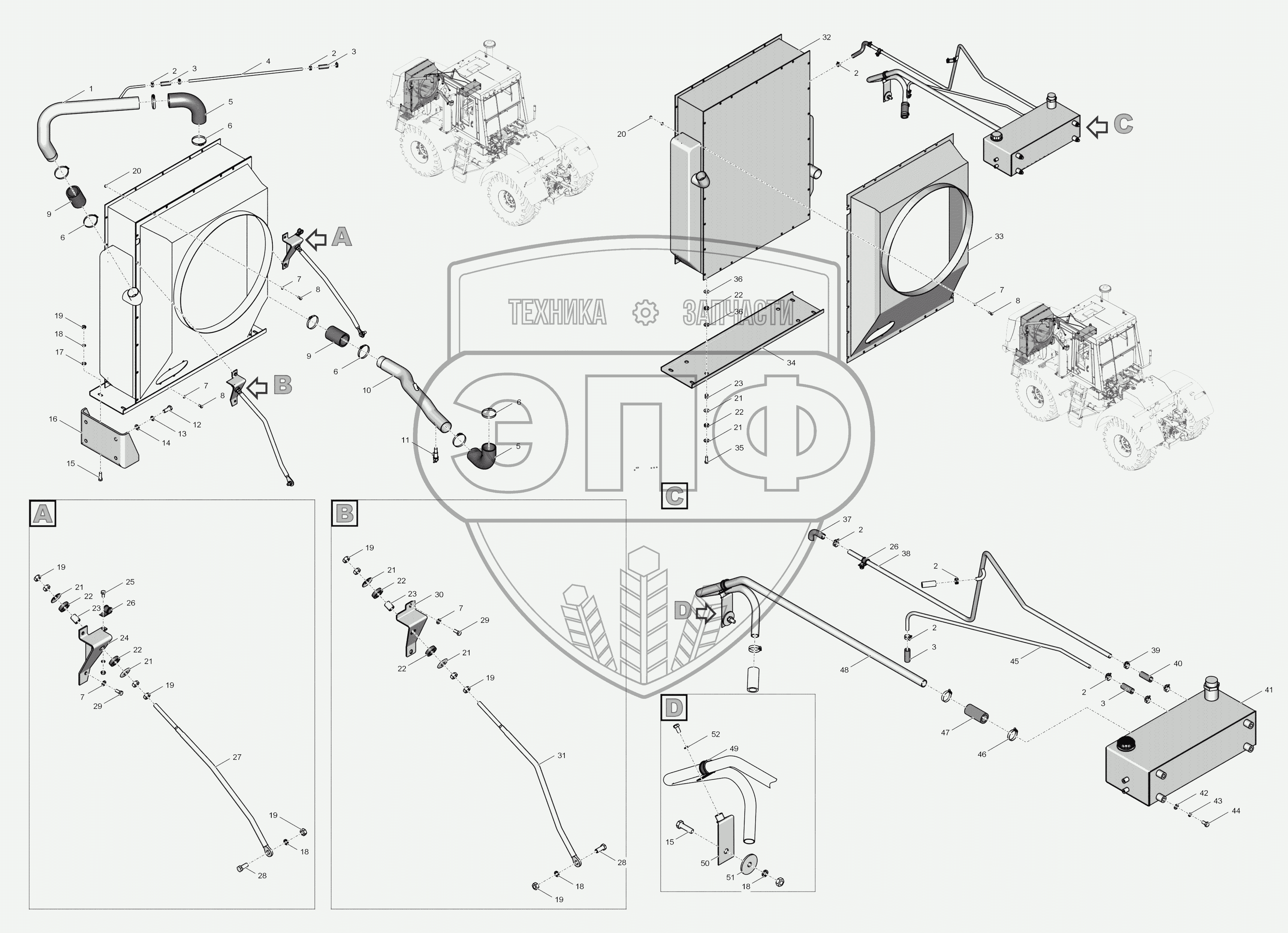 Каталог запасных частей к технике: ПТЗ К-744Р3 "Премиум". Э744Р3М-1300000-1 Система охлаждения
