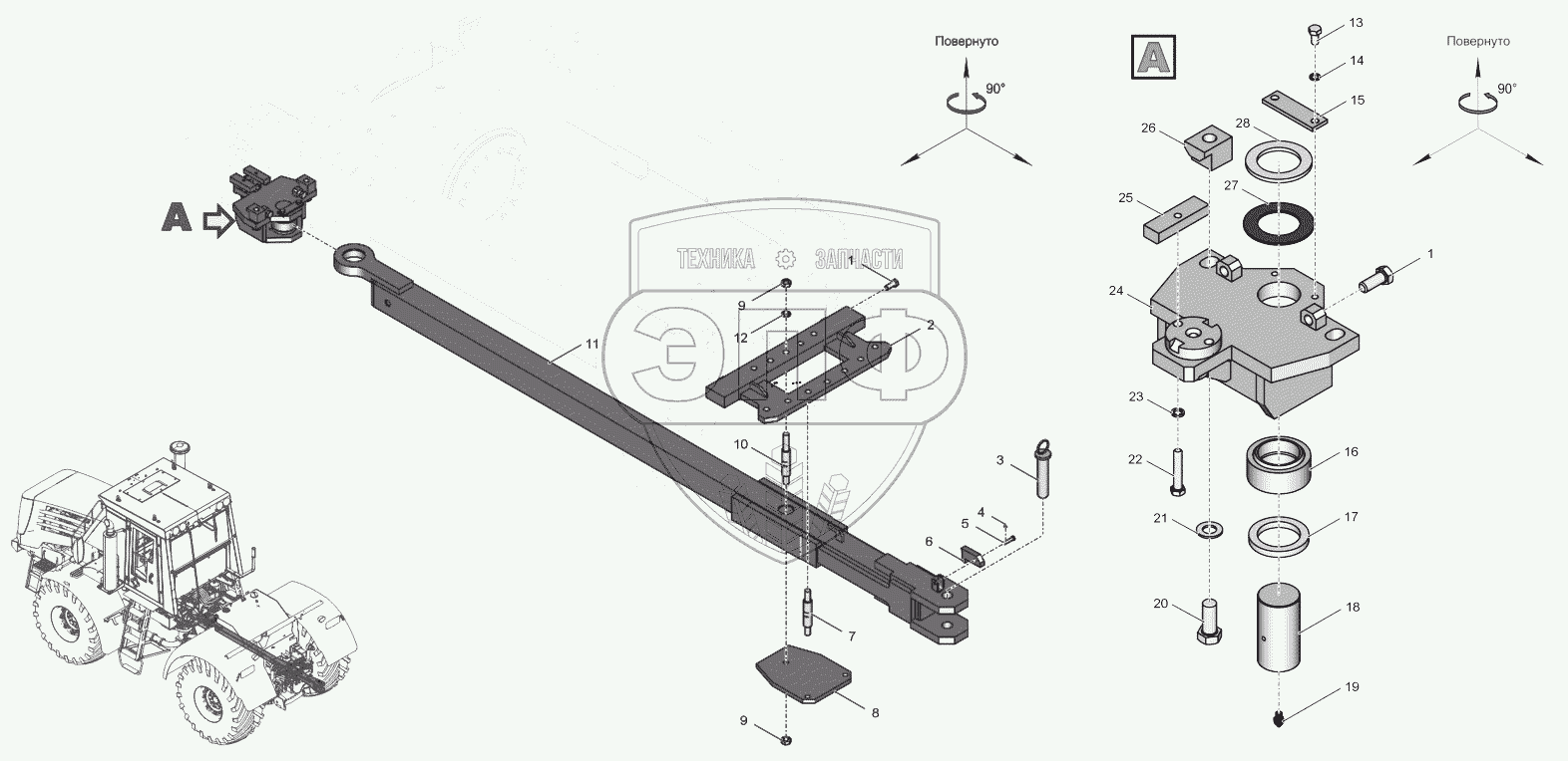 Каталог запасных частей к технике: ПТЗ К-744Р4 "Стандарт". 744Р1-4642000 Маятниковое прицепное устройство