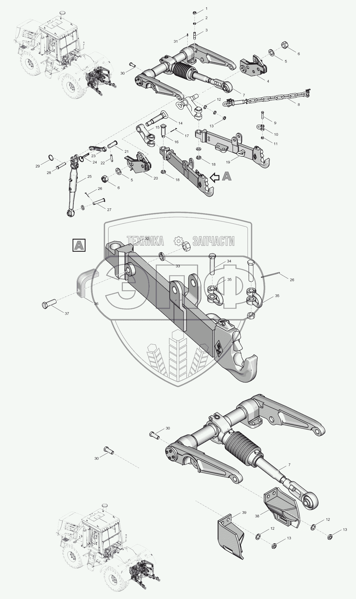 Каталог запасных частей к технике: ПТЗ К-744Р4 "Стандарт". 744Р3-4628000 Механизм навески