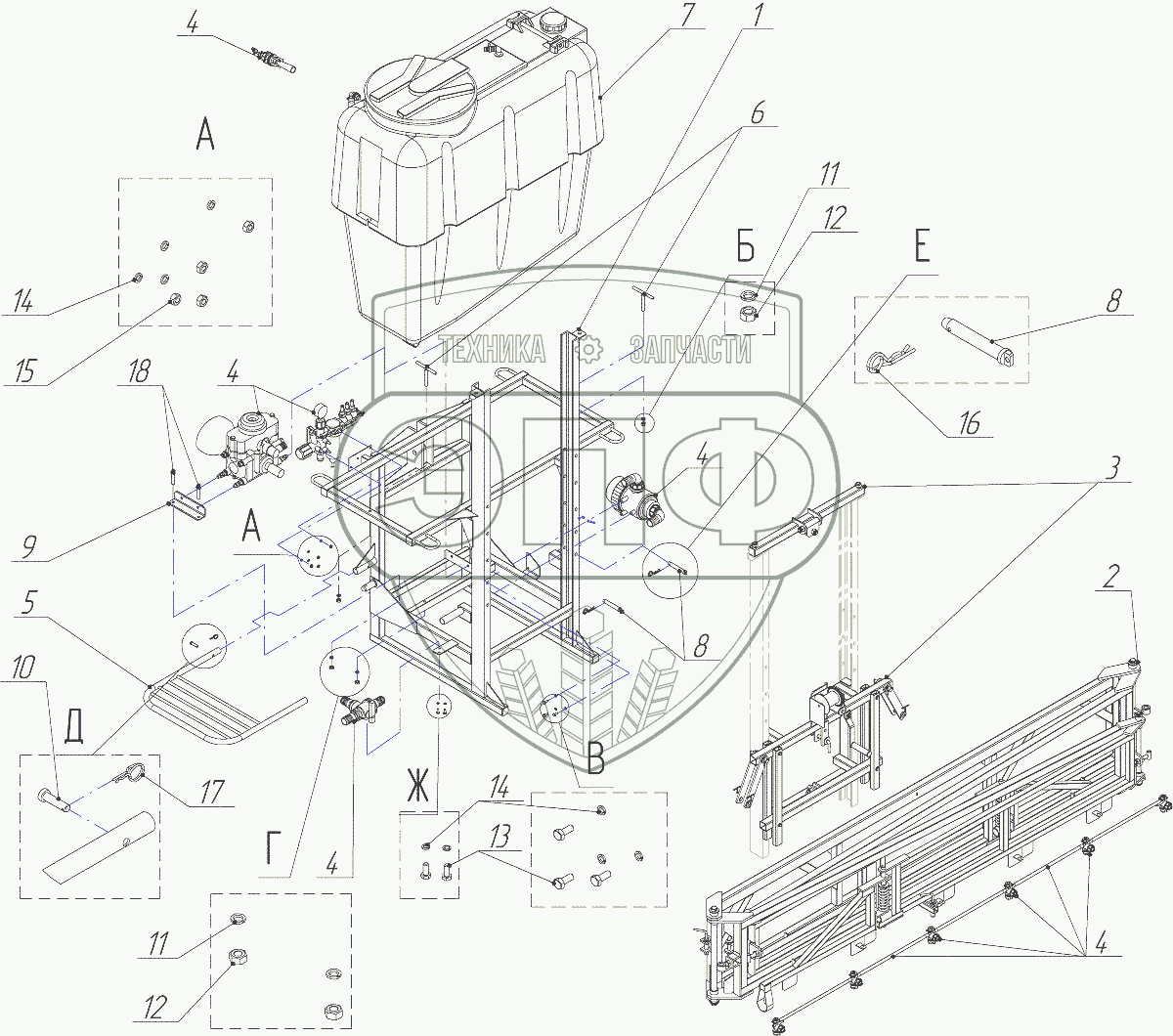 Каталог запасных частей к технике: Ремком ОН-600-12Р. Опрыскиватель ОН 600-12Р