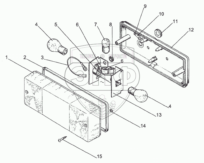 Каталог запасных частей к технике: Ремком ОП-2500. 7303.3716 Фонарь задний
