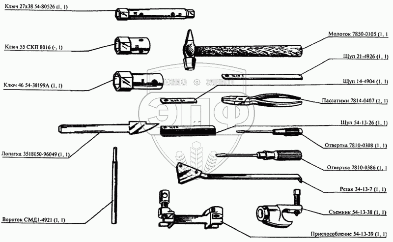Каталог запасных частей к технике: РСМ CK-5М-1 «Нива». Инструмент и принадлежности