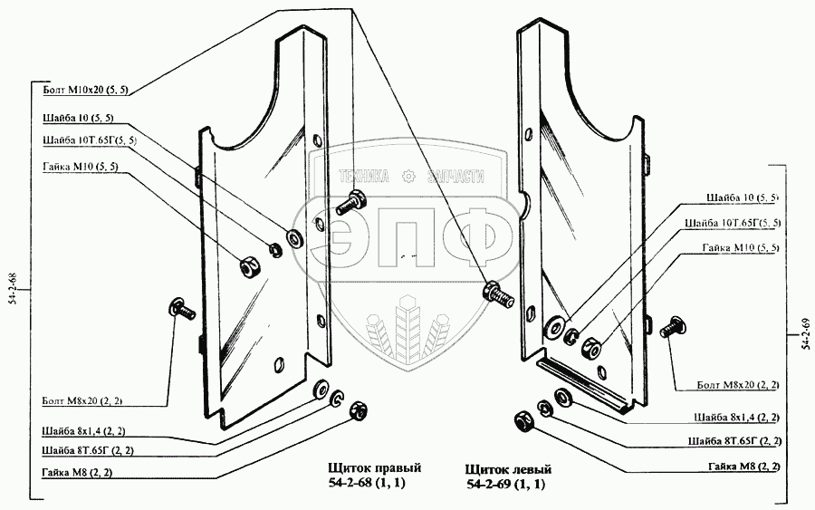 Каталог запасных частей к технике: РСМ CK-5М-1 «Нива». Щиток правый, щиток левый