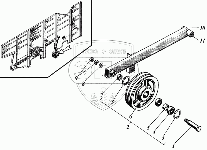 Каталог запасных частей к технике: РСМ Дон 1200Б. Ролик натяжной привода контрпривода измельчителя