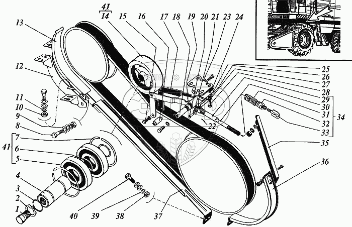 Каталог запасных частей к технике: РСМ Дон 1500Б. Механизм включения и выключения привода жатки