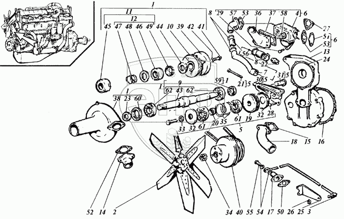 Каталог запасных частей к технике: РСМ Дон 1500Б. Насос водяной и вентилятор