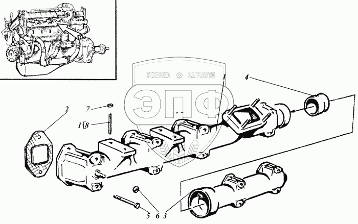 | 3 | 461-51-0702-20 | Коллектор выпускной 5 и 6 цилиндров | Нет на складе | |