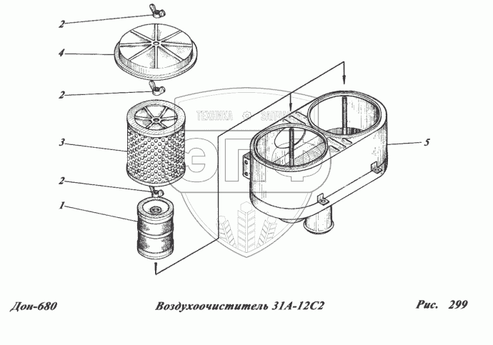 Каталог запасных частей к технике: РСМ-100 (Дон-680). Воздухоочиститель 31А-12С2