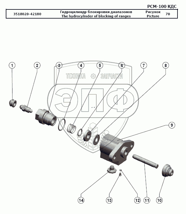 Каталог запасных частей к технике: РСМ-100 (Дон-680М). Гидроцилиндр блокировки диапазонов