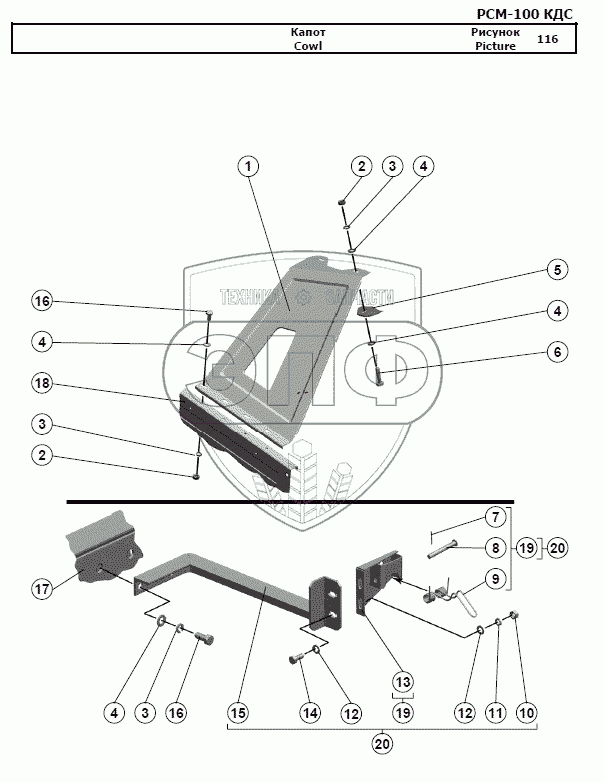 Каталог запасных частей к технике: РСМ-100 (Дон-680М). Капот