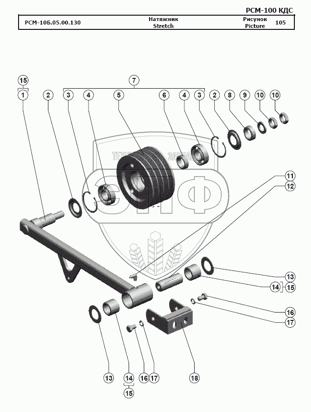 Каталог запасных частей к технике: РСМ-100 (Дон-680М). Натяжник