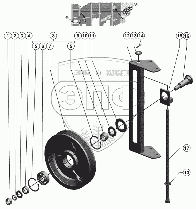 Каталог запасных частей к технике: РСМ-10Б "Дон-1500Б". Шкив натяжной