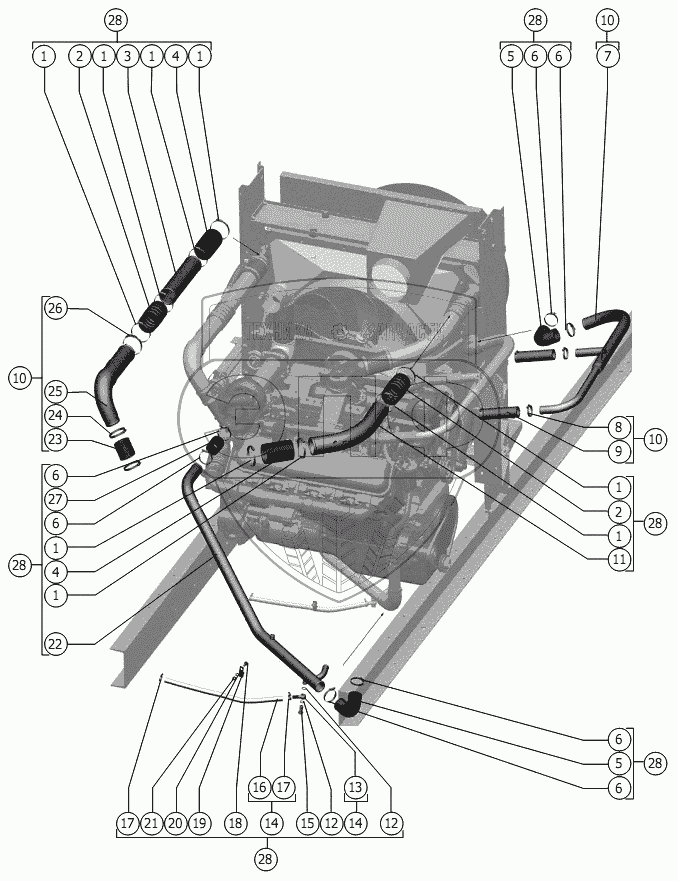 Каталог запасных частей к технике: РСМ-1401. Установка трубопровода на блок радиатора