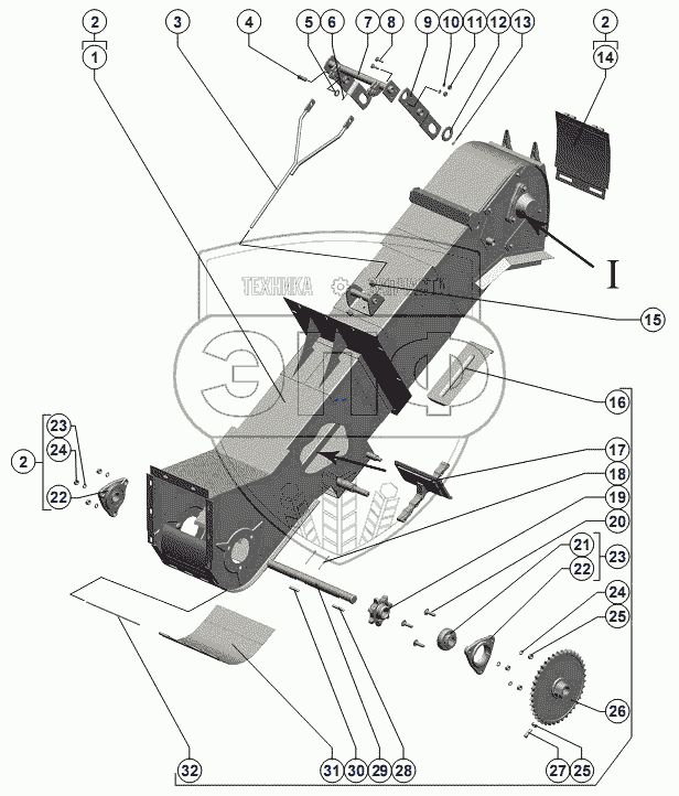 Каталог запасных частей к технике: РСМ-142 "Acros". Элеватор зерновой
