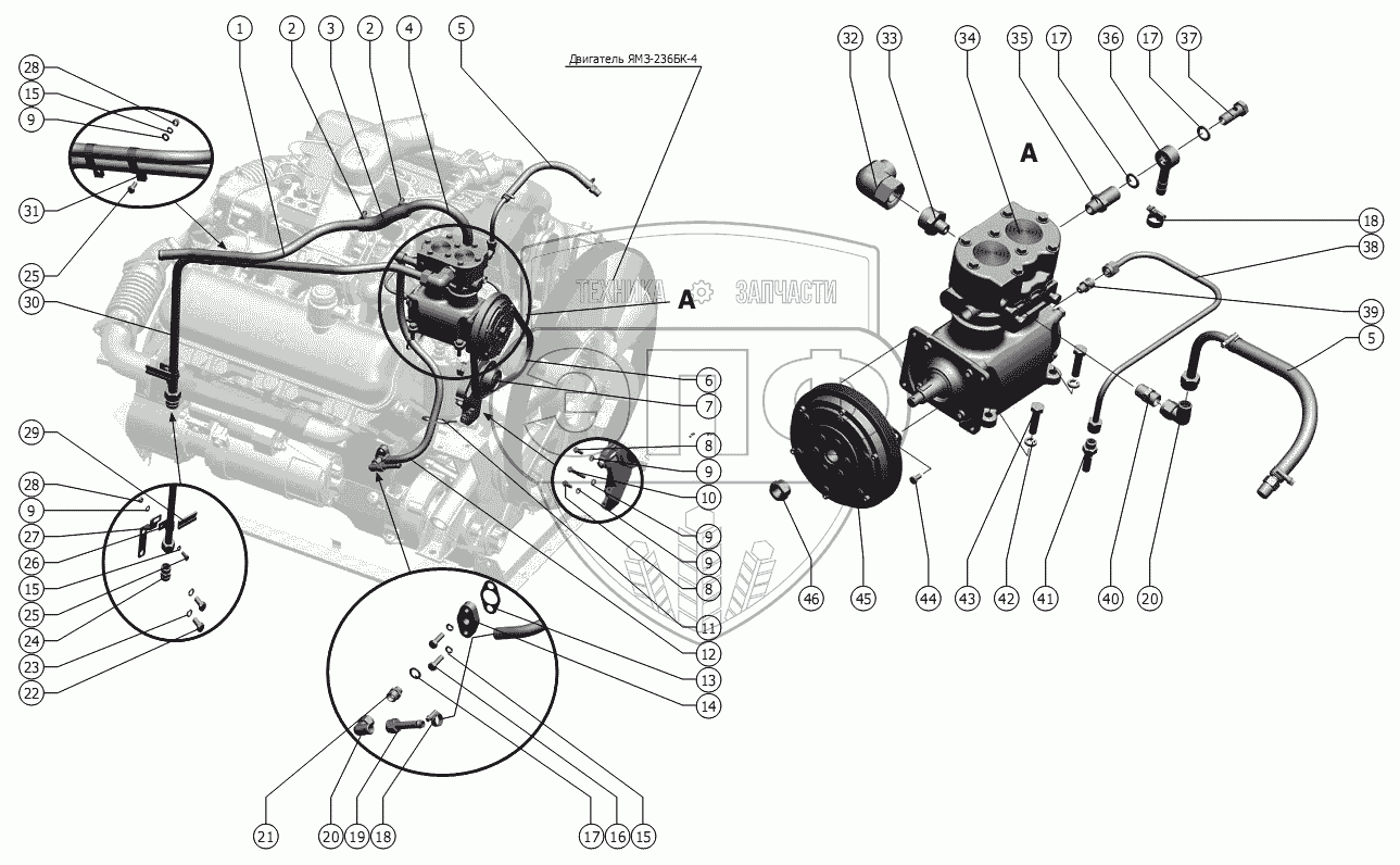 Каталог запасных частей к технике: РСМ-142 "Acros" вариант. Пневмосистема двигателя ЯМЗ