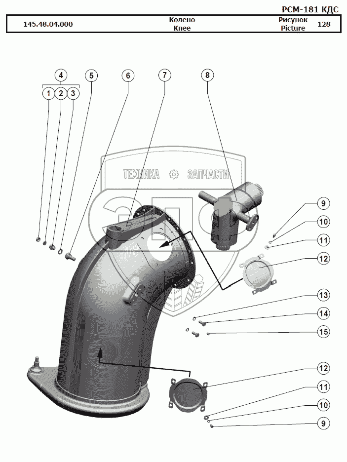 Каталог запасных частей к технике: РСМ-181 "Torum-740". Колено