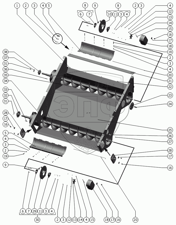 Каталог запасных частей к технике: РСМ-181 "Torum-740" (вариант). Блок шнеков