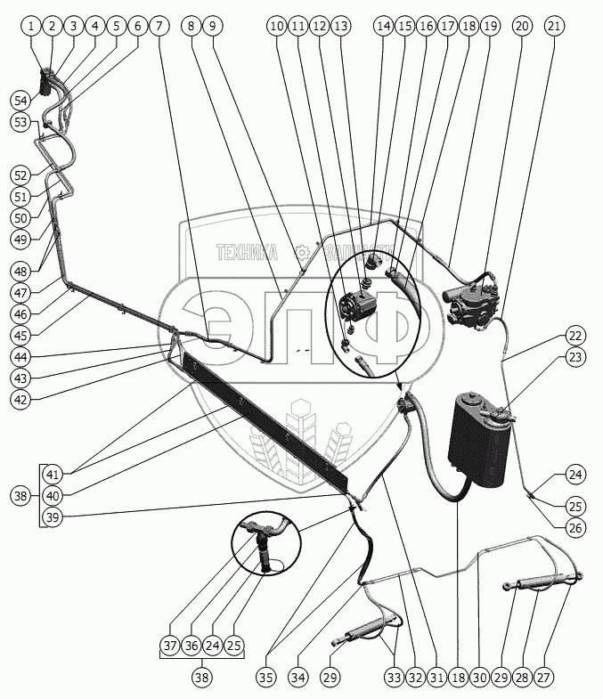 Каталог запасных частей к технике: РСМ-181 "Torum-740" (вариант). Гидросистема объемного рулевого управления