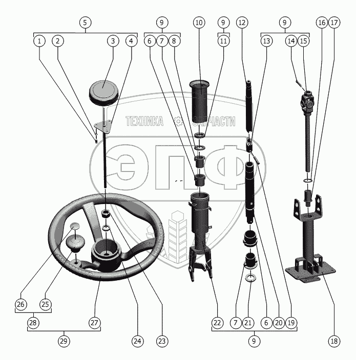 Каталог запасных частей к технике: РСМ-181 "Torum-740" (вариант). Колонка рулевая