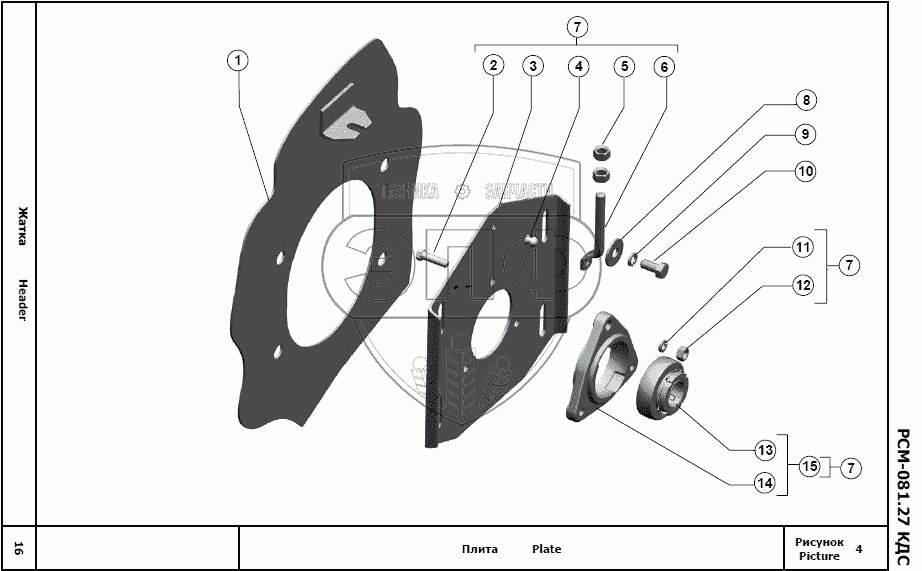 Каталог запасных частей к технике: РСМ Жатка РСМ-081.27. Плита