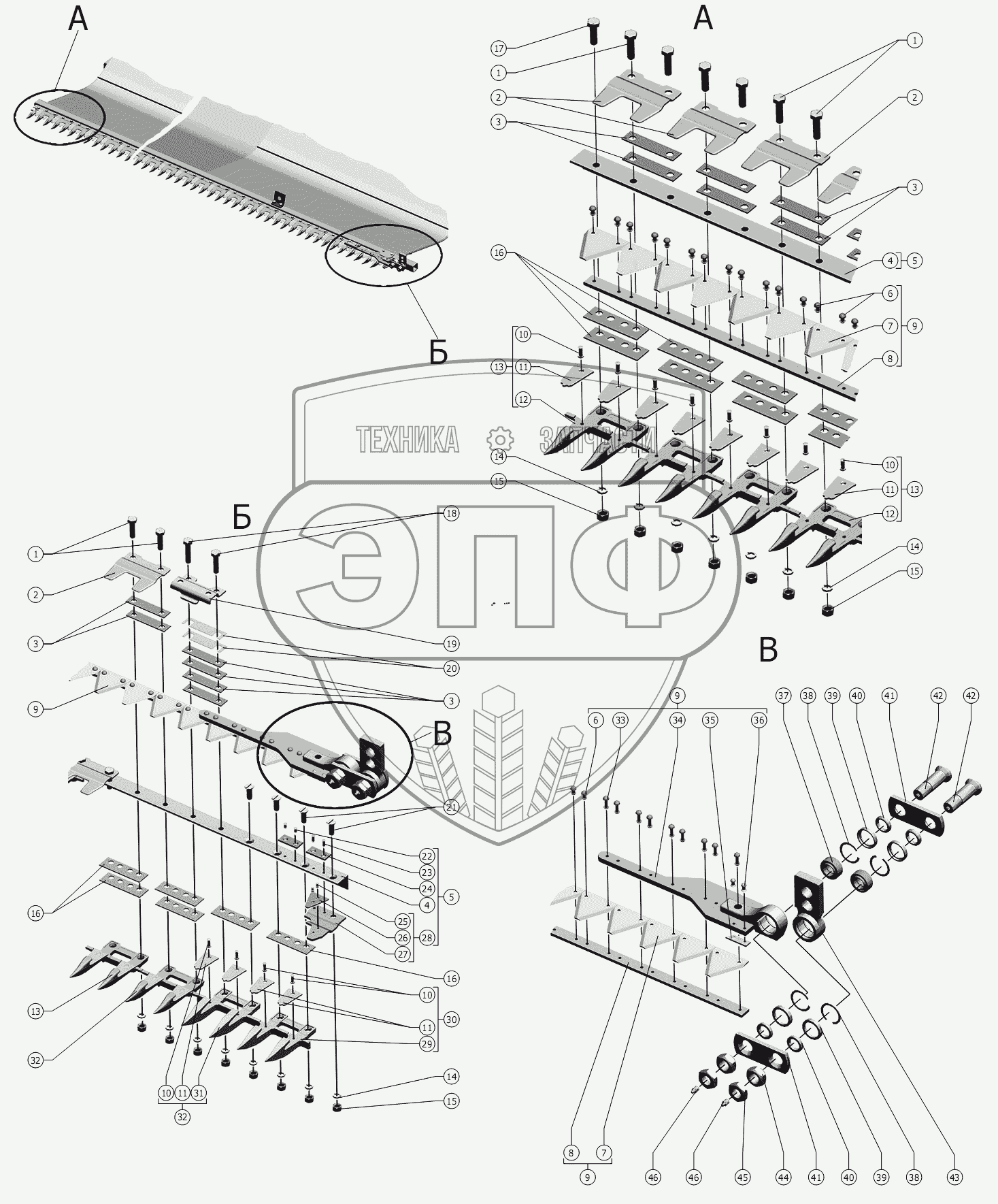 Каталог запасных частей к технике: РСМ Жатка РСМ-081.27 (вариант). Аппарат режущий