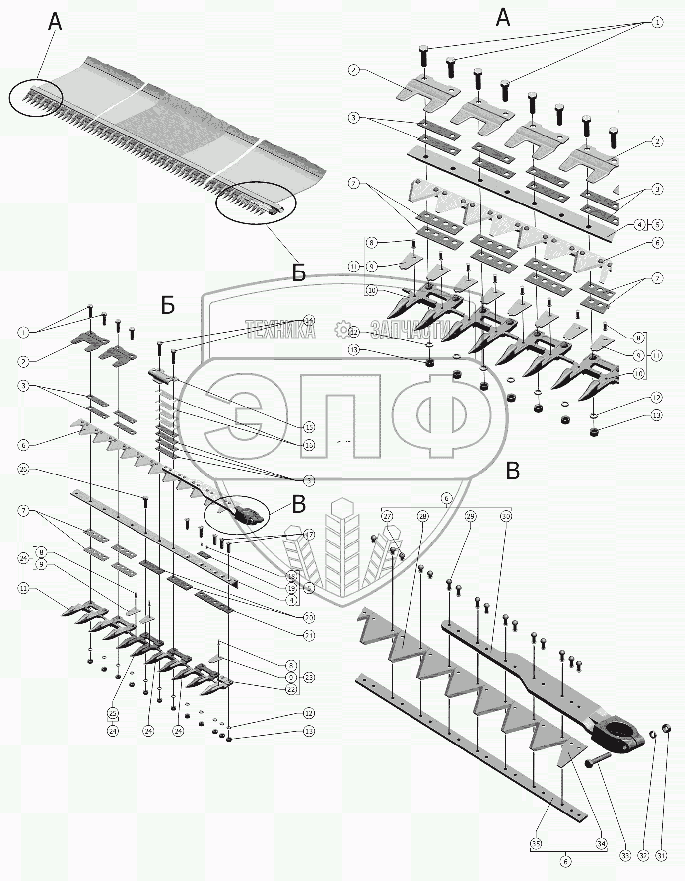Каталог запасных частей к технике: РСМ Жатка РСМ-081.27 (вариант). Аппарат режущий