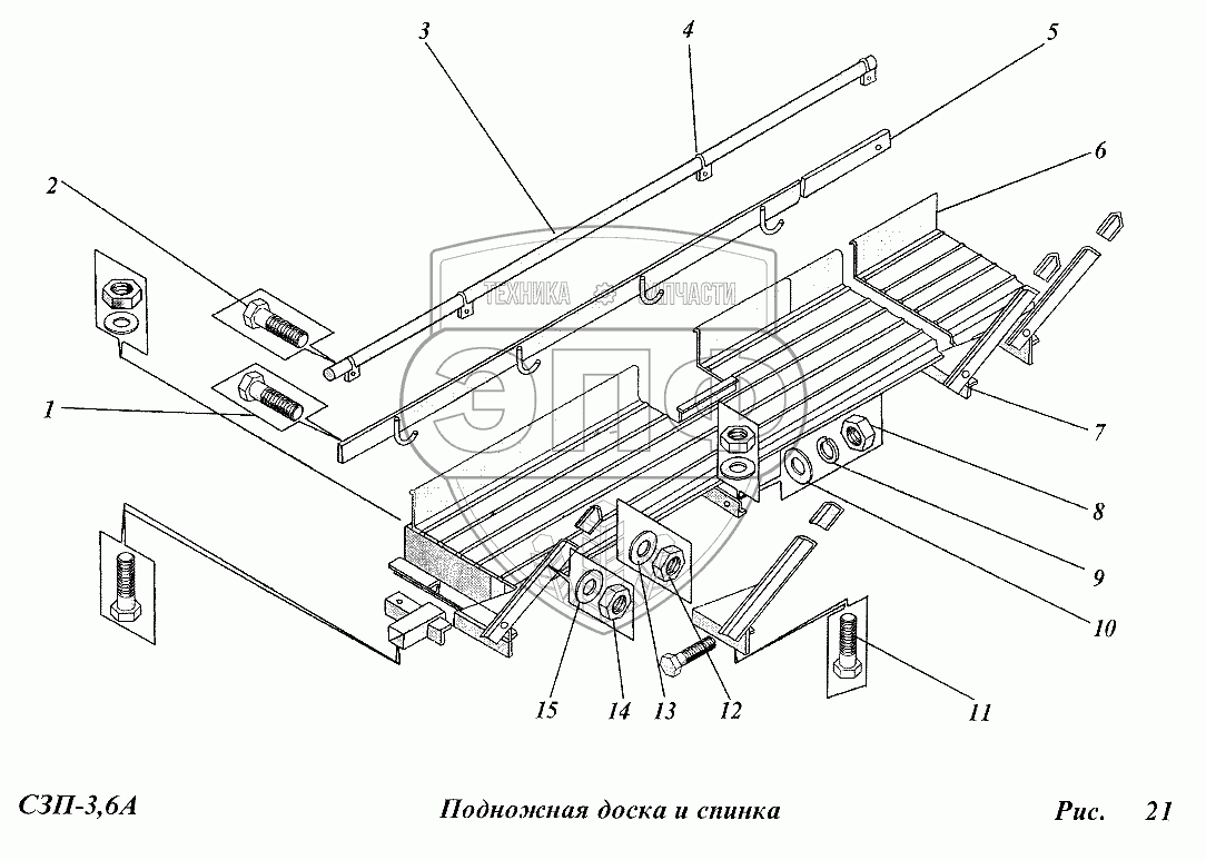 Каталог запасных частей к технике: Сибсельмаш СЗП-3,6А. Подножная доска и спинка