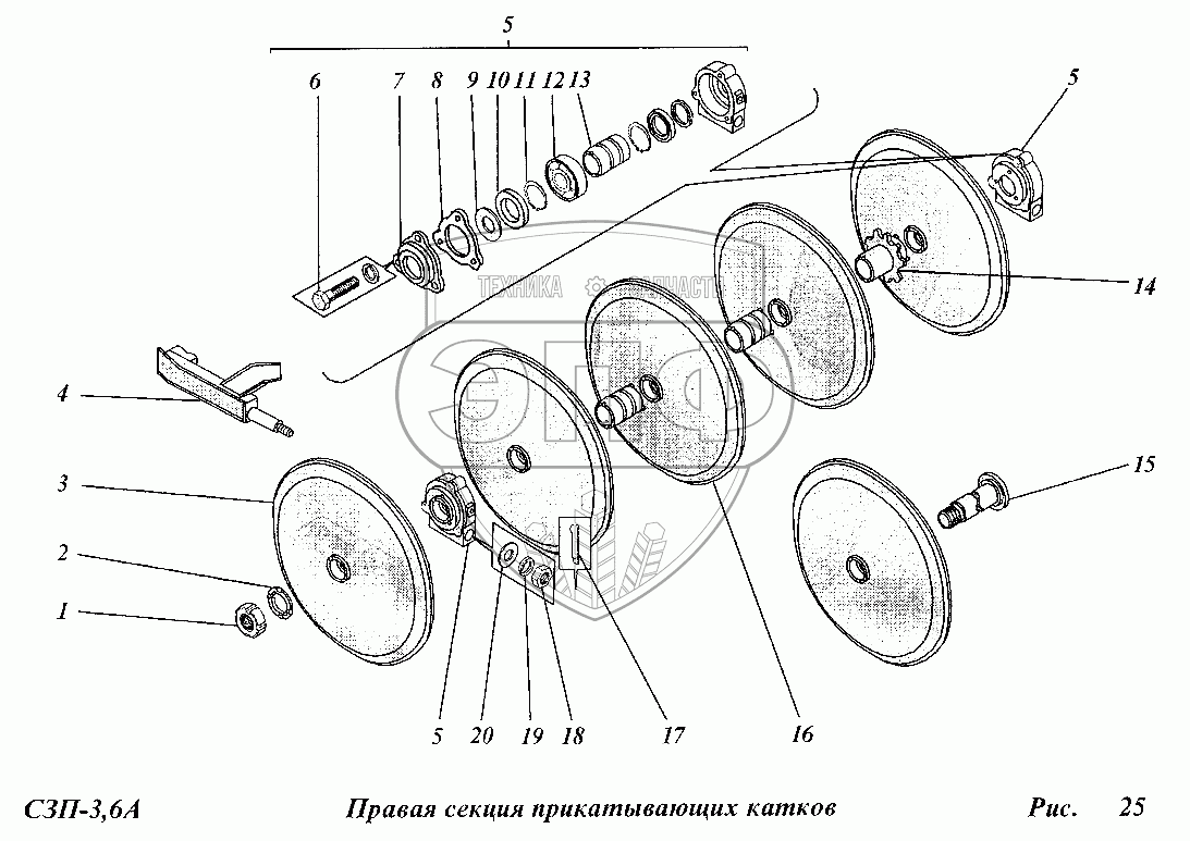Каталог запасных частей к технике: Сибсельмаш СЗП-3,6А. Правая секция прикатывающих катков