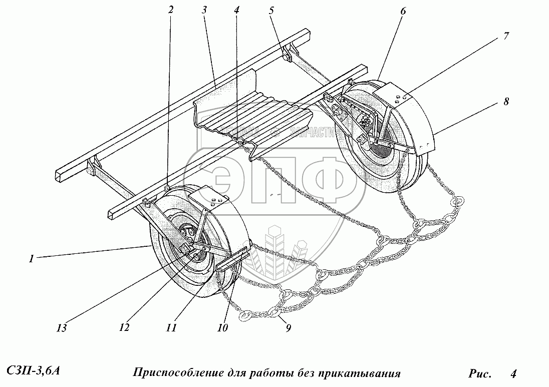 Каталог запасных частей к технике: Сибсельмаш СЗП-3,6А. Приспособление для работы без прикатывания