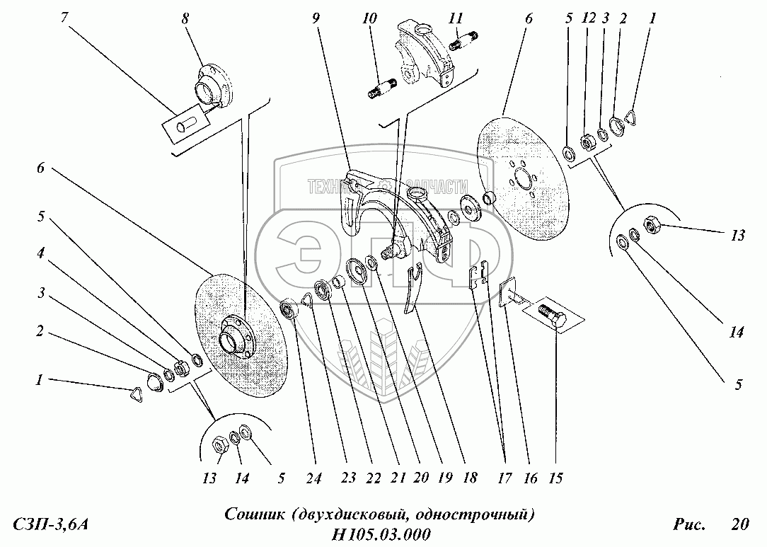 Каталог запасных частей к технике: Сибсельмаш СЗП-3,6А. Сошник Н105.03.000
