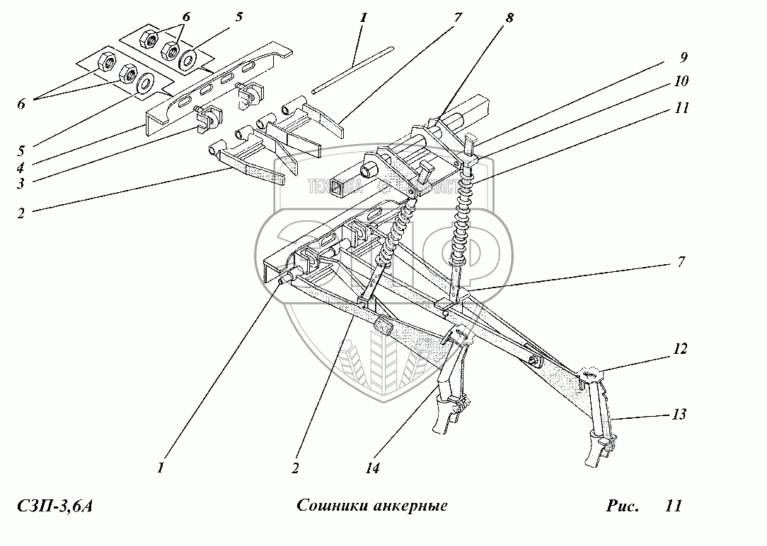Каталог запасных частей к технике: Сибсельмаш СЗП-3,6А. Сошники анкерные