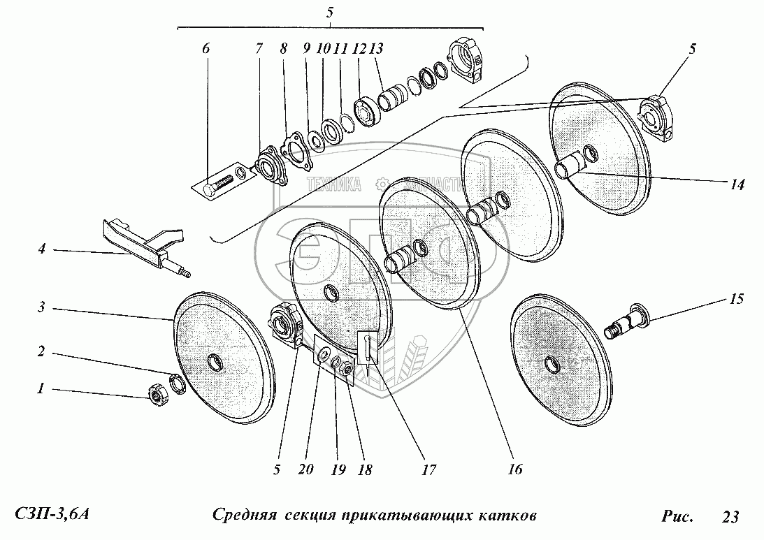 Каталог запасных частей к технике: Сибсельмаш СЗП-3,6А. Средняя секция прикатывающих катков