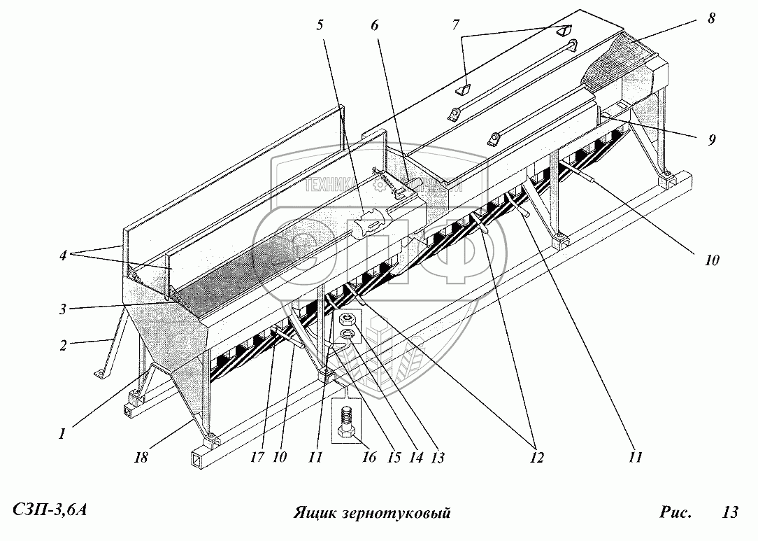 Каталог запасных частей к технике: Сибсельмаш СЗП-3,6А. Ящик зернотуковый