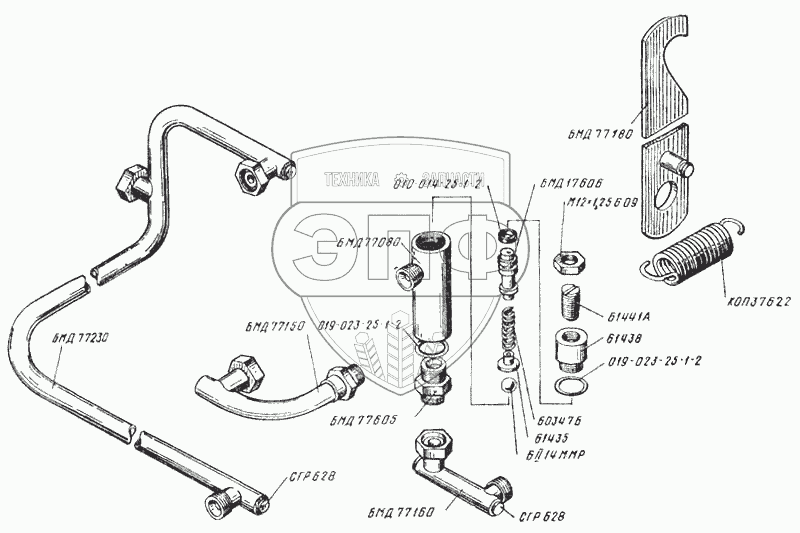 Каталог запасных частей к технике: ТеКЗ БМ-6А. Клапан перепускной. Маслопровод