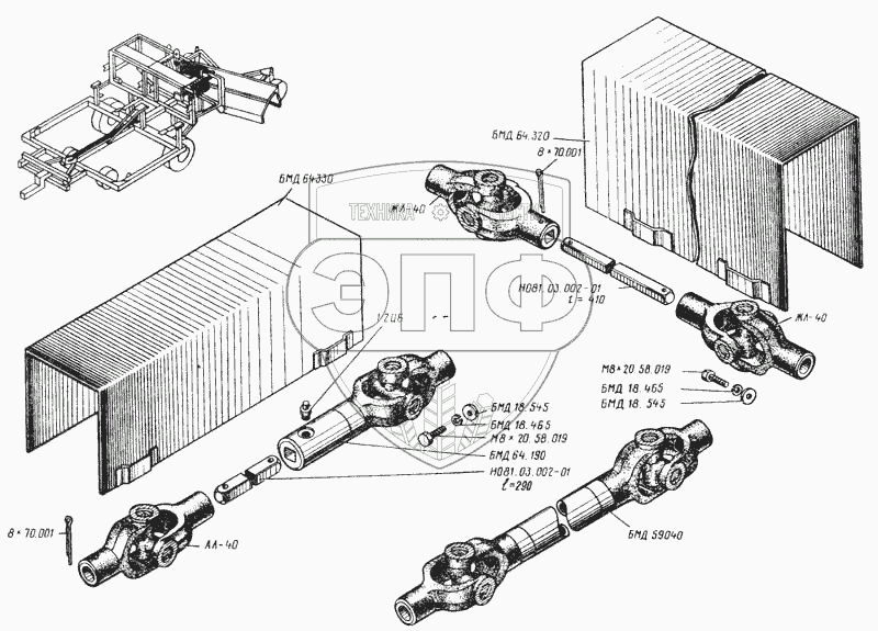 Каталог запасных частей к технике: ТеКЗ БМ-6А. Передача карданная очистителя головок корней