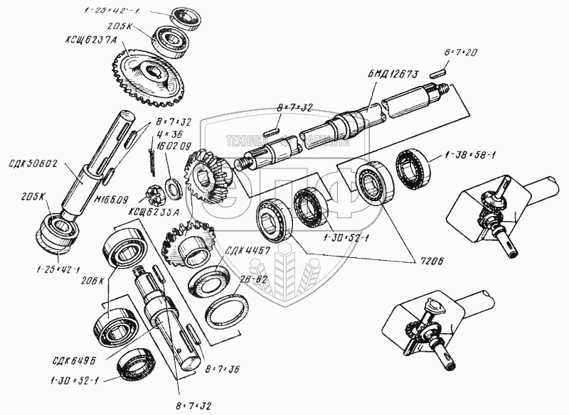 Каталог запасных частей к технике: ТеКЗ БМ-6А. Редуктор. Валы и шестерни