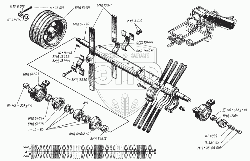 Каталог запасных частей к технике: ТеКЗ БМ-6А. Вал очистителя головок корней
