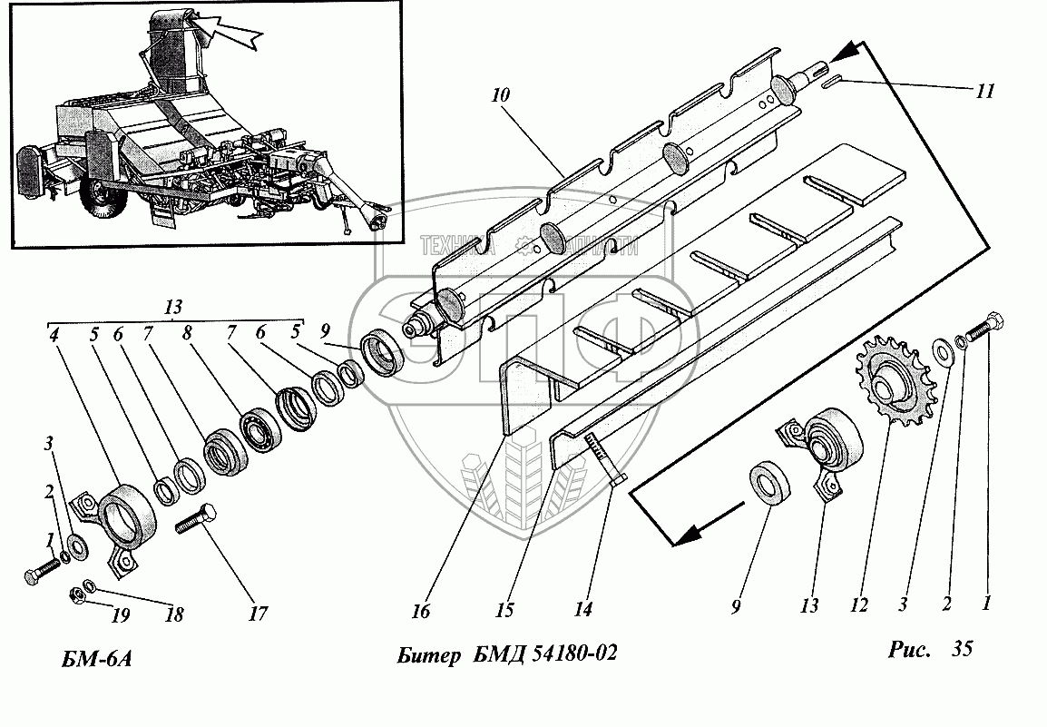 Каталог запасных частей к технике: ТеКЗ БМ-6А (2005). Битер (БМД54180-02)