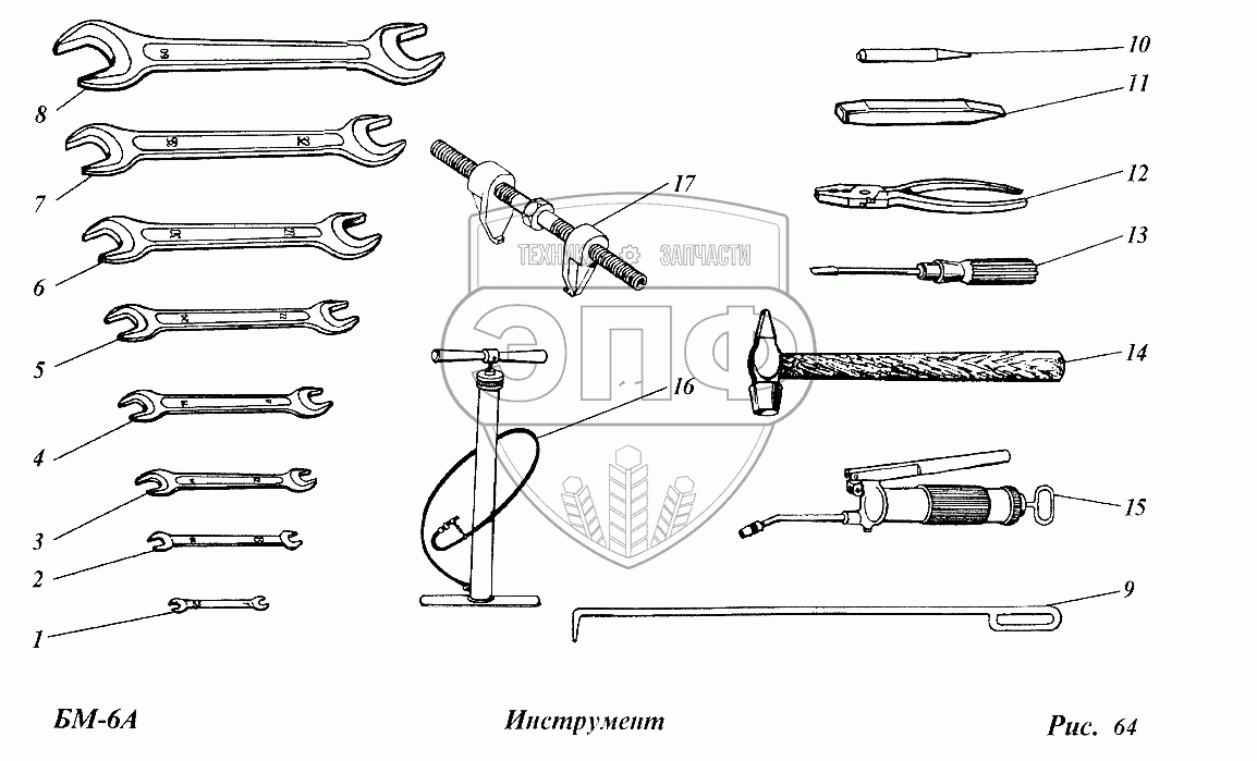 Каталог запасных частей к технике: ТеКЗ БМ-6А (2005). Инструмент