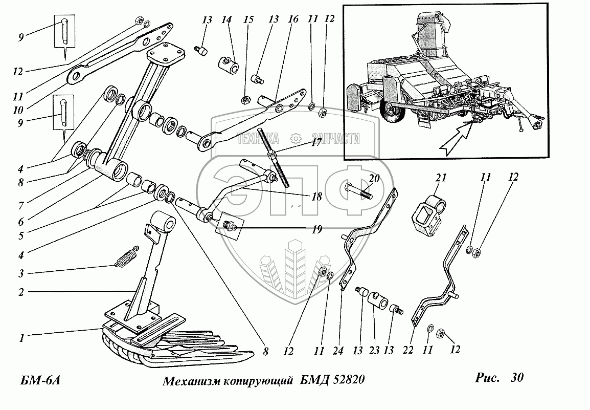 Каталог запасных частей к технике: ТеКЗ БМ-6А (2005). Механизм копирующий (БМД52820)