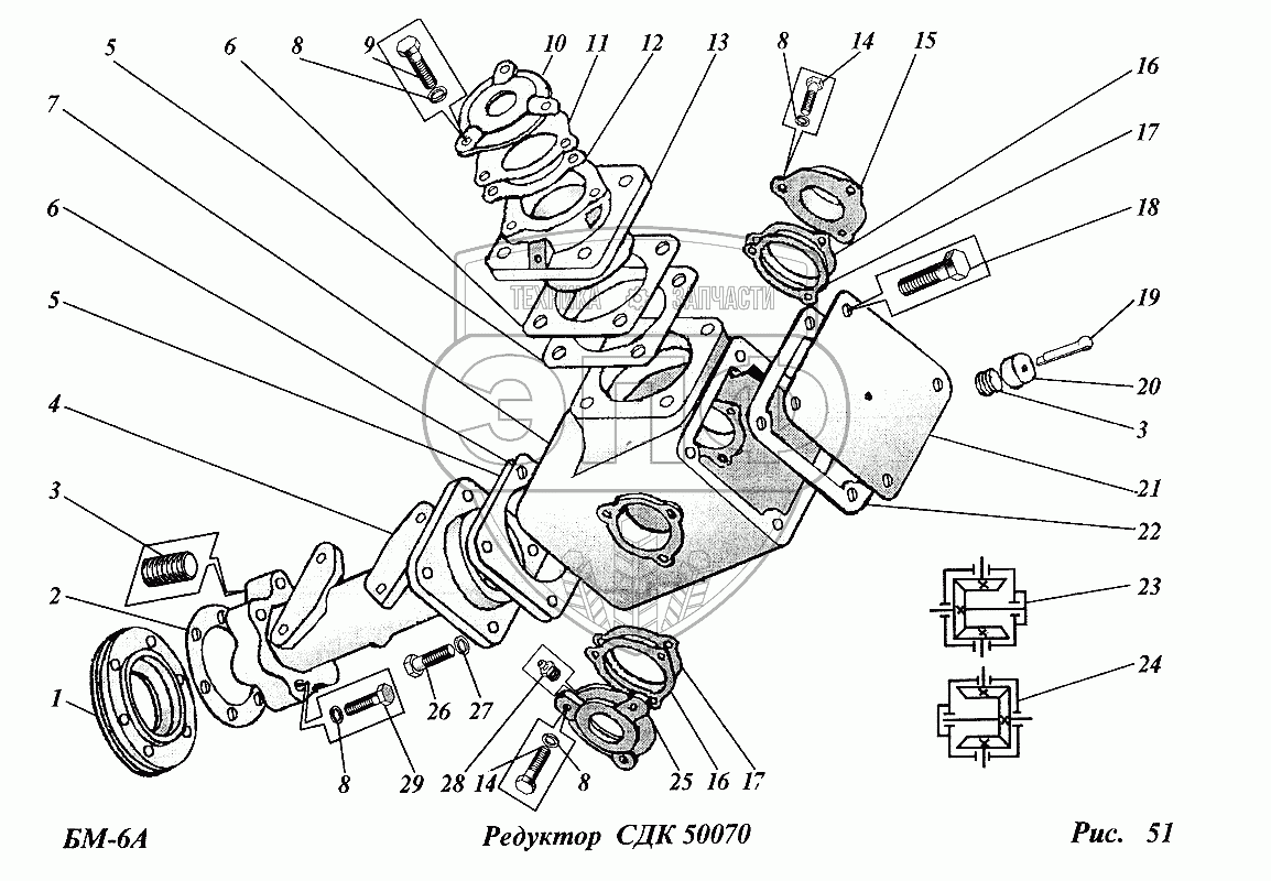 Каталог запасных частей к технике: ТеКЗ БМ-6А (2005). Редуктор (СДК50070)
