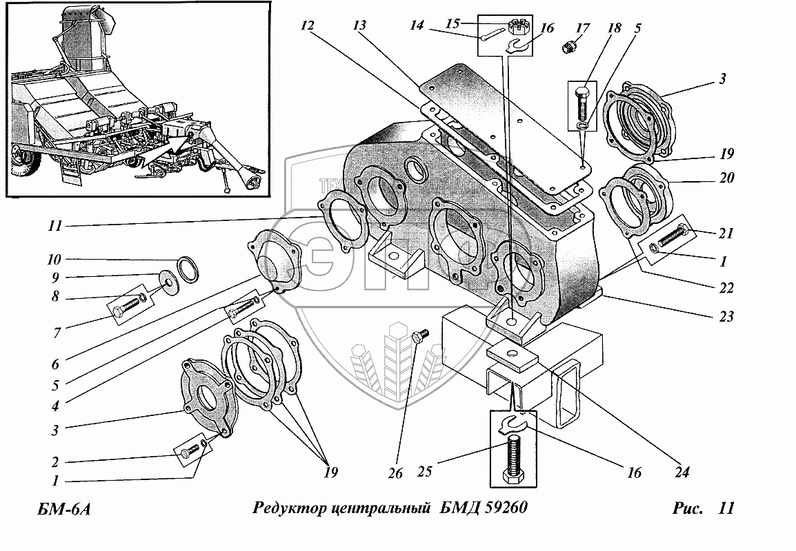 Каталог запасных частей к технике: ТеКЗ БМ-6А (2005). Редуктор центральный (БМД59260)